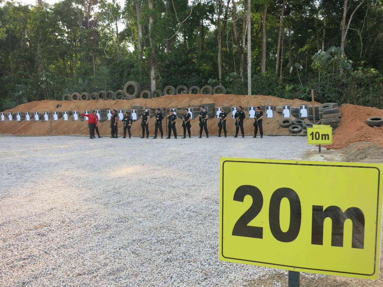 Durante a inauguração, os professores de armamento e tiro da PFPV de demais agentes fizeram uma demonstração de atividades na pista de tiro.
